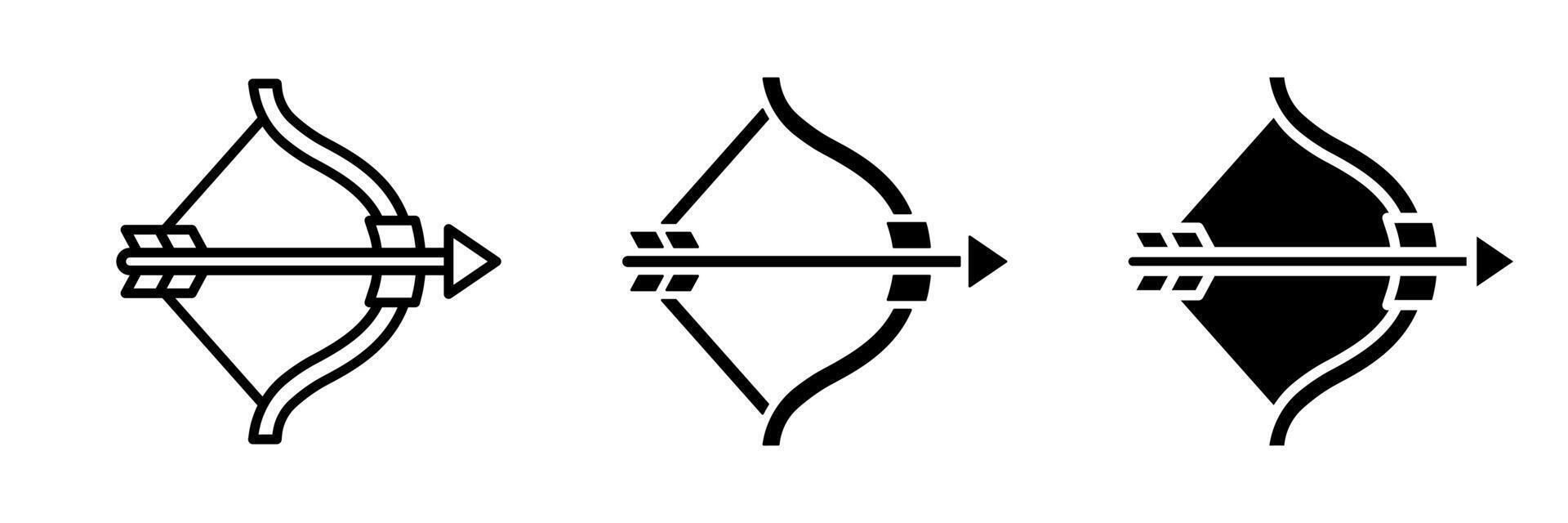 Archery icon set. Simple Line Style Bow And Arrow Outline Weapon Icon Element on white background. Pro Vector