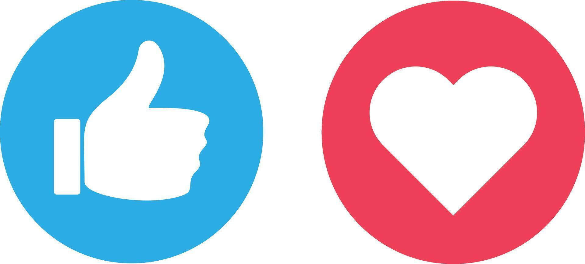 Thumb up and heart icon illustration showing like and love button symbol for social media app ui ux and web design on transparent background. Pro Vector