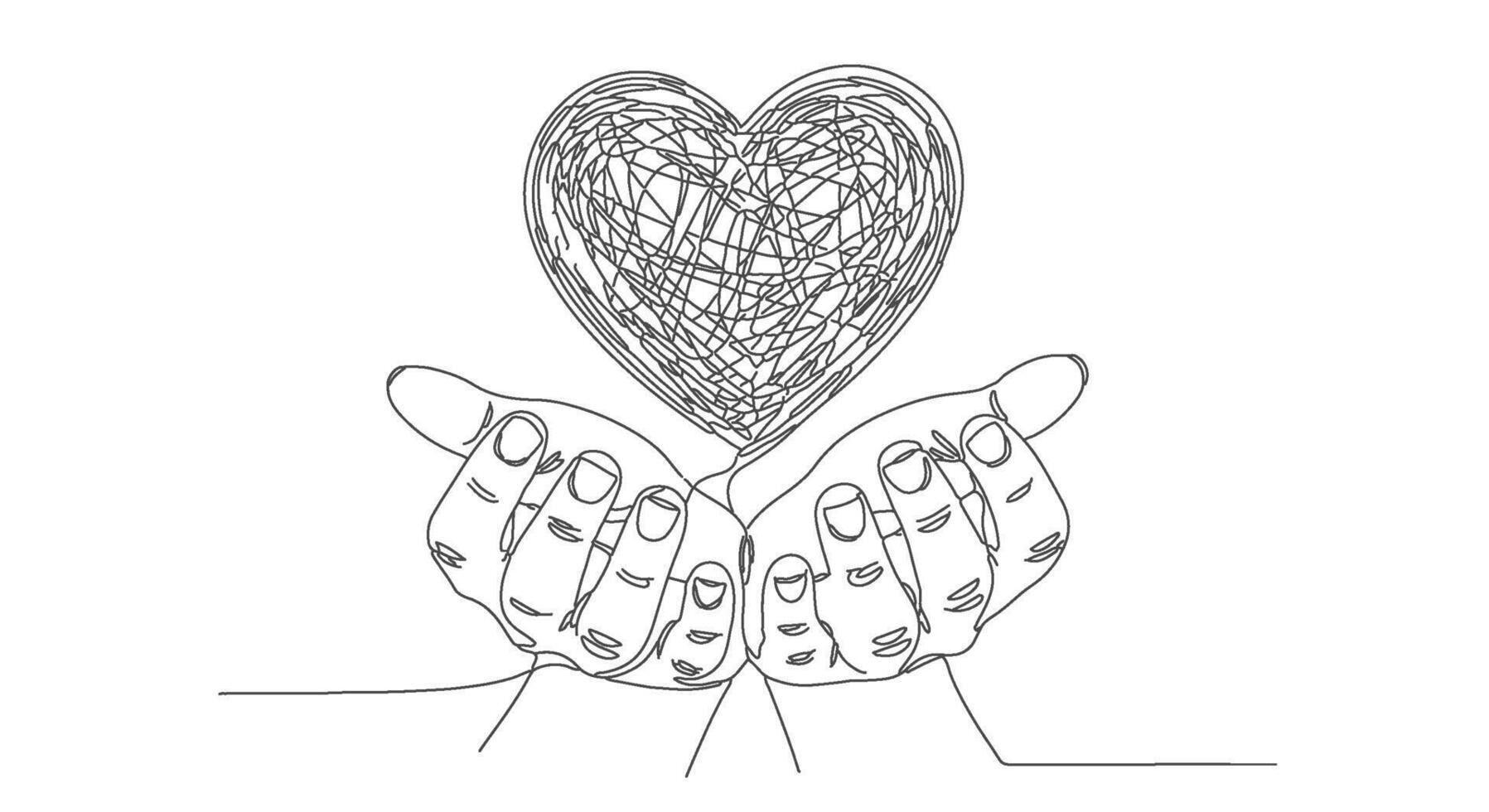 One Line Continuous Drawing of Cupped Hands Gently Holding a Scribbled Heart, Symbolizing Care and Emotional Support Pro Vector