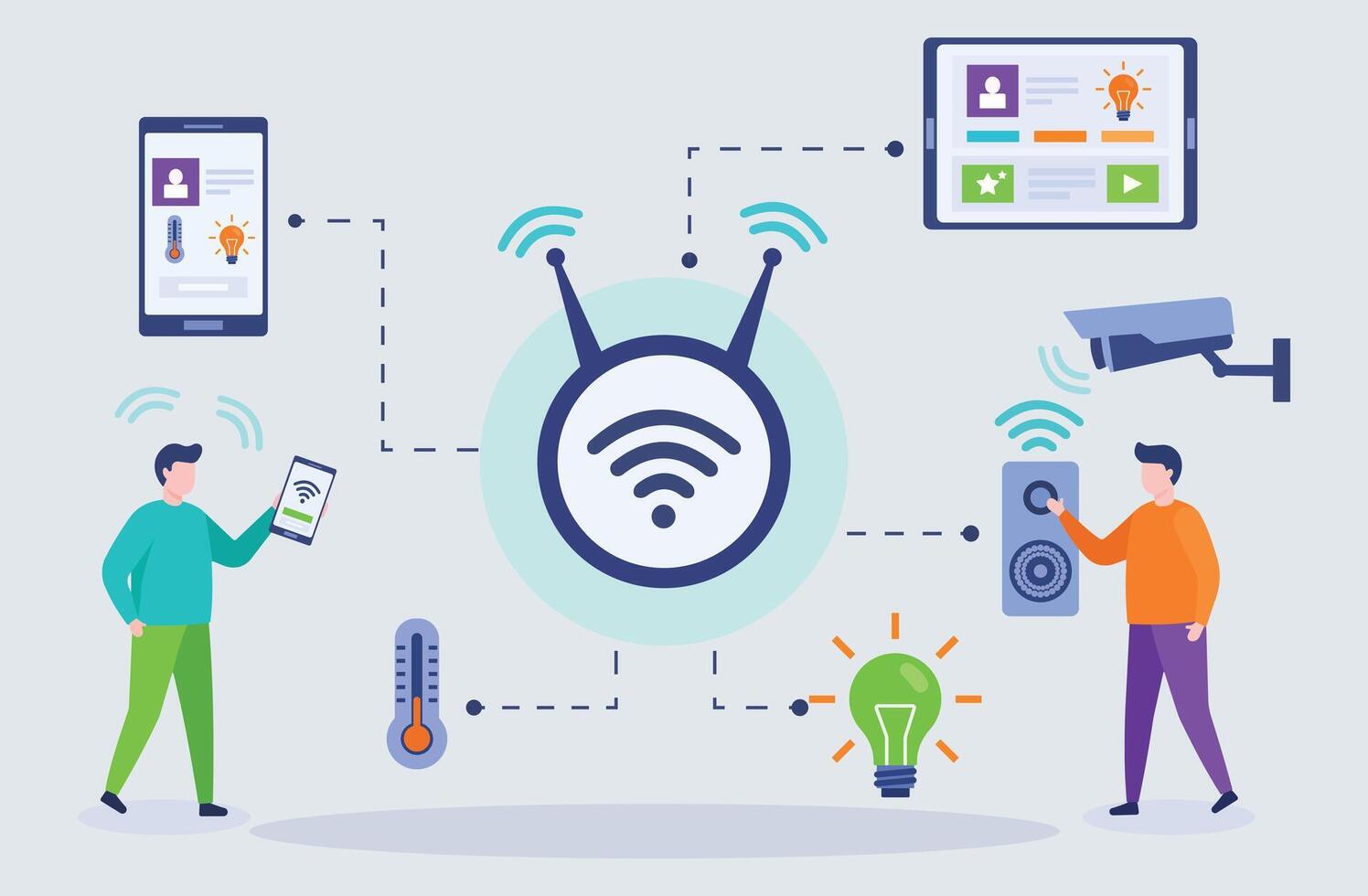 Internet of Things IoT in Smart Home Devices and Connectivity Concept Pro Vector