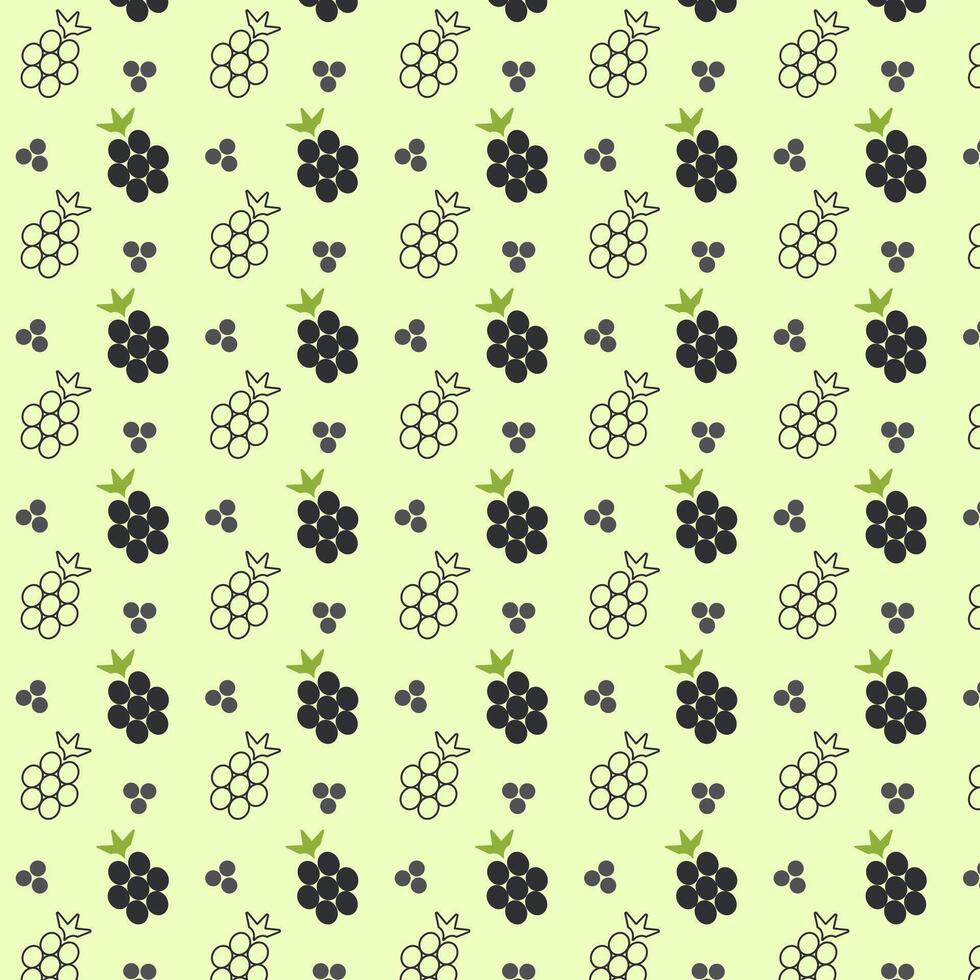 This lively pattern showcases a repeated design of fruit line icons, featuring blackberries and floral elements on a soft pale green background. Perfect for various creative projects. Pro Vector
