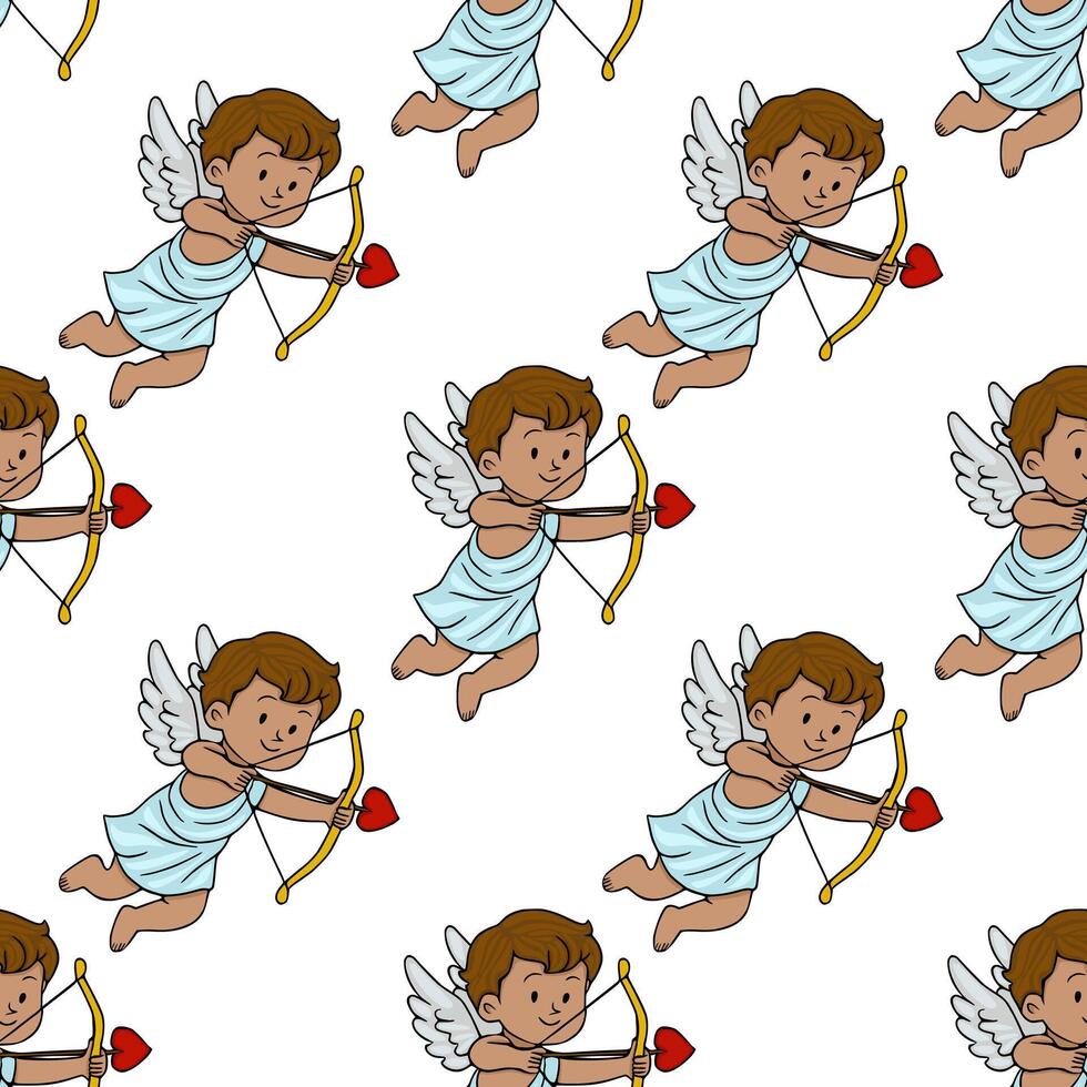 Charming pattern featuring playful cupids with bows and heart arrows, set against a clean white background, evoking a whimsical and romantic Valentine Day theme. Pro Vector