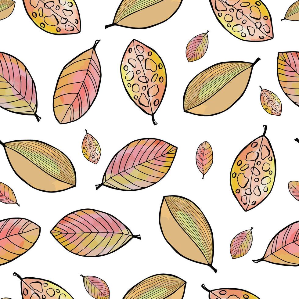 Seamless pattern with leaves in doodle style. Hand drawn line design elements. Abstract autumn botanical illustrations Pro Vector