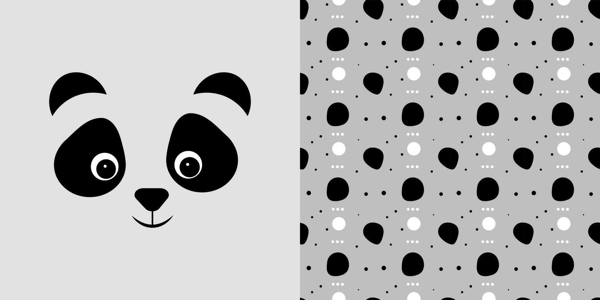 Seamless pattern with black spots on a gray background. Panda head on a gray background Pro Vector