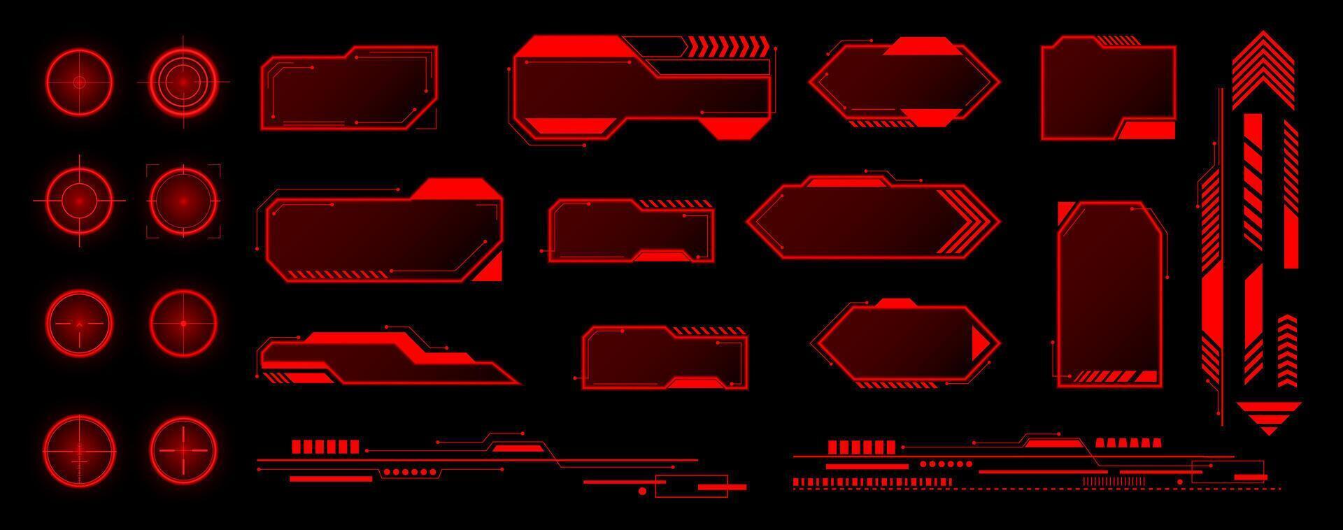 Dynamic red HUD elements for digital interfaces and game design Pro Vector