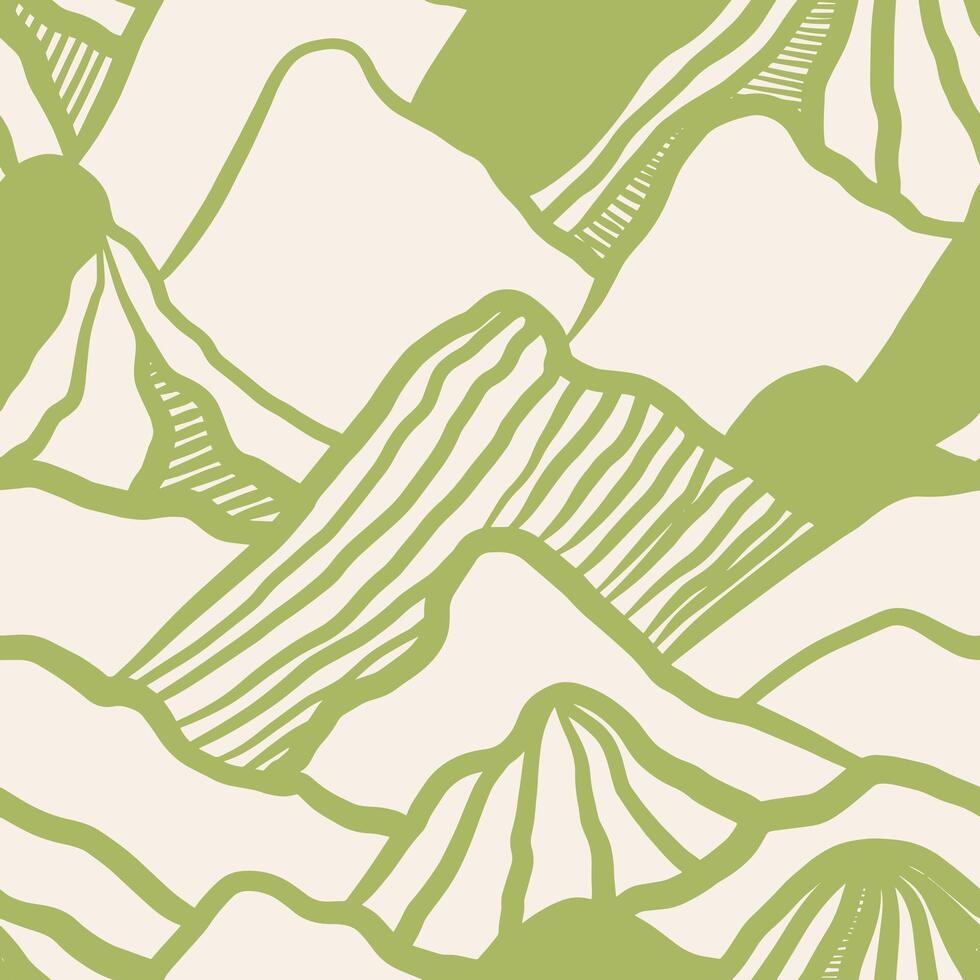 Hand drawn mountain seamless pattern. Japanese background with line wave pattern. Landscape pattern Pro Vector