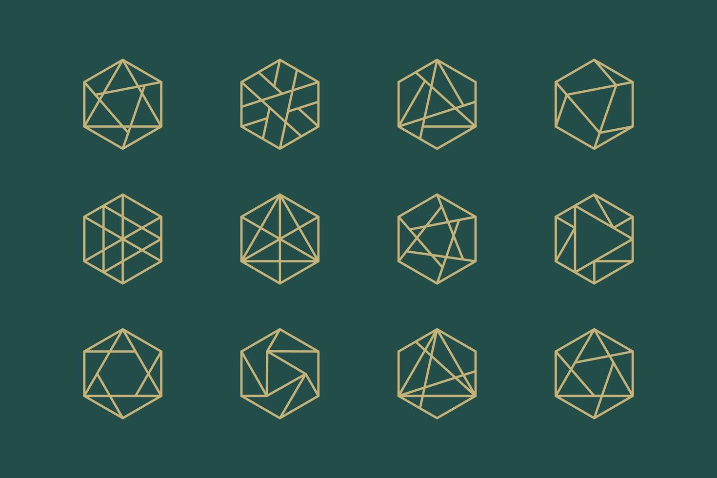 Geometric Line Hexagon Logo Element Design Set Pro Vector