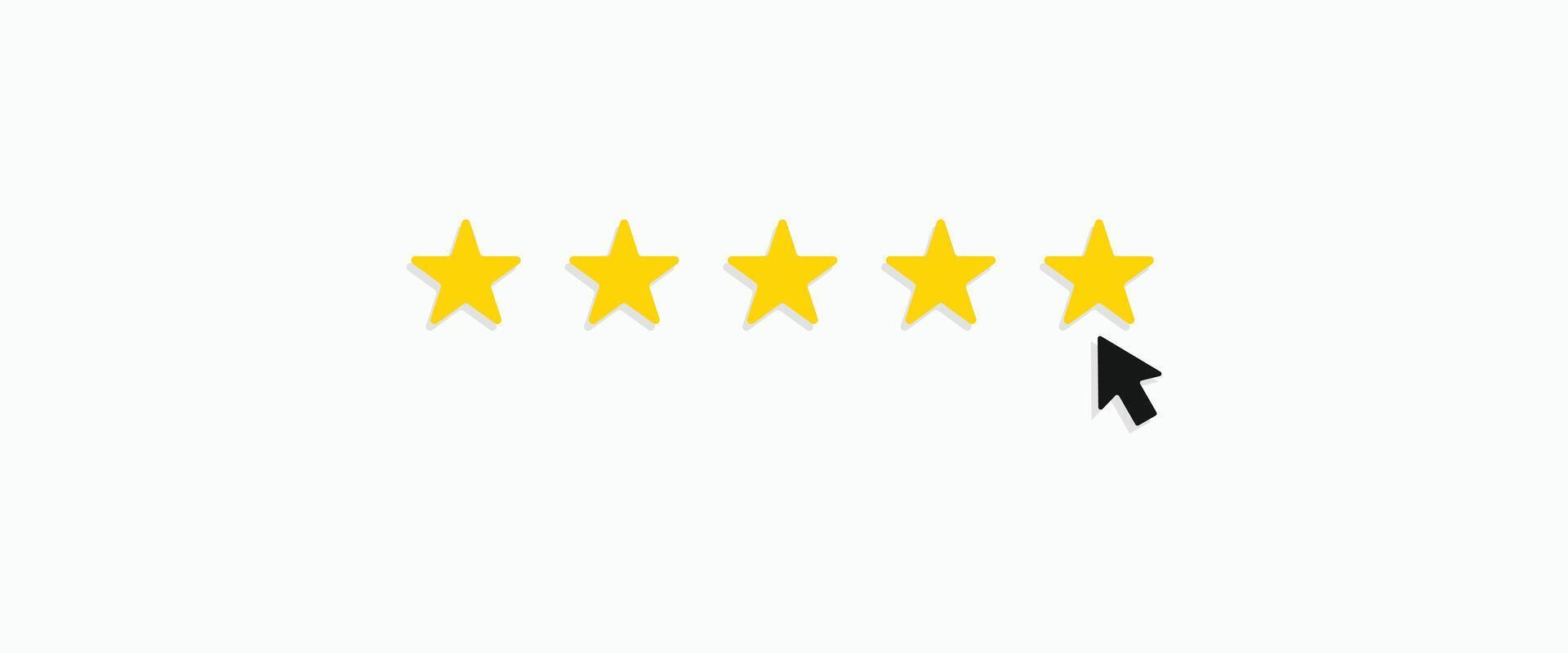 Five star rating illustration with mouse cursor click. Perfect customer satisfaction and quality service symbol Pro Vector