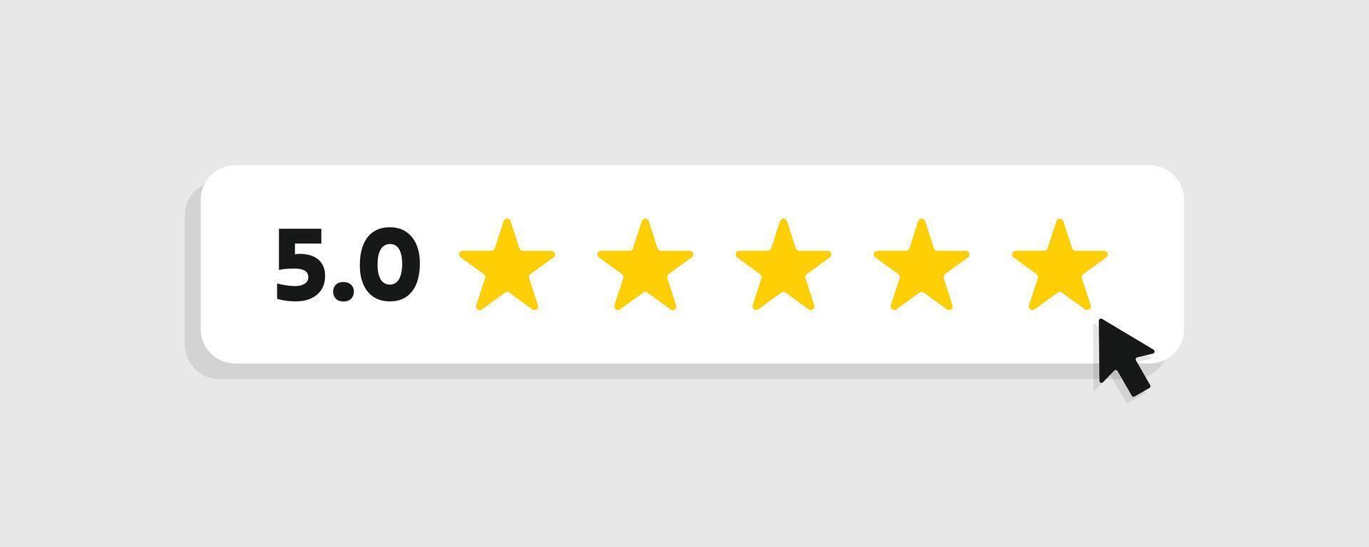 5.0 five star rating graphic with mouse cursor click. Excellent customer satisfaction and quality feedback symbol Pro Vector