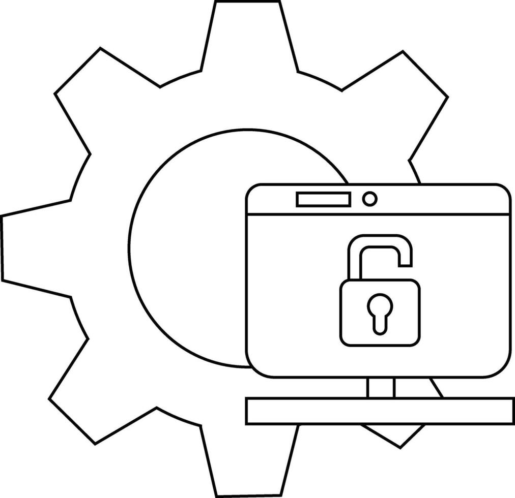 A gear behind a computer screen displaying an open padlock icon Free Vector