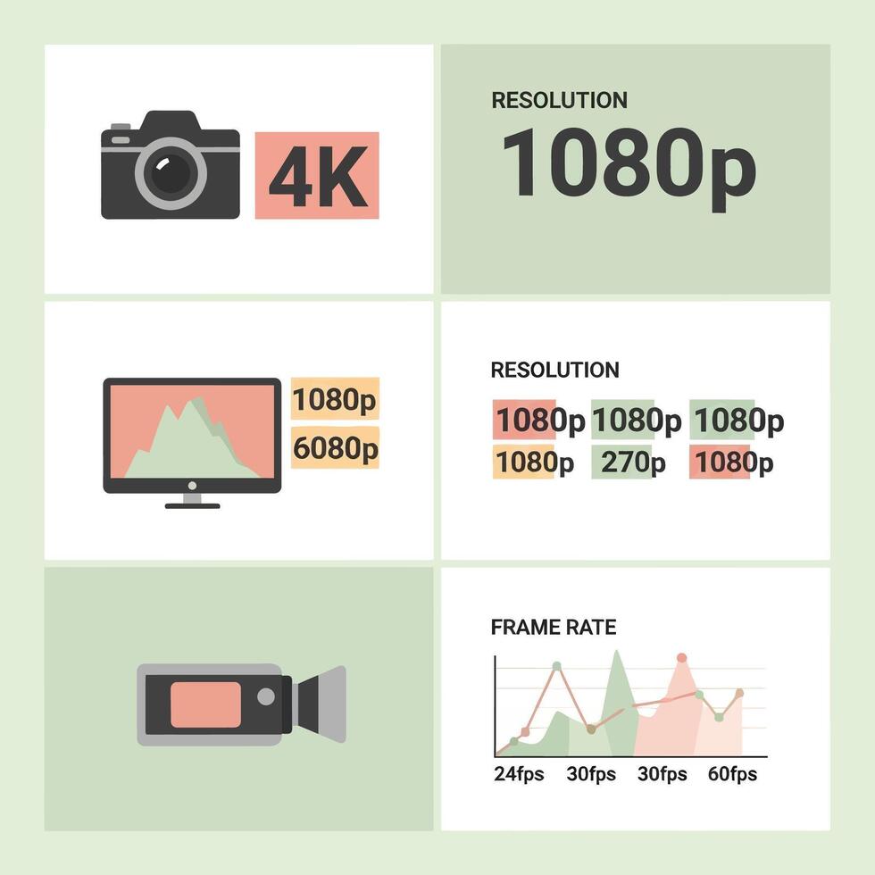 Digital Resolution and Frame Rate Explained with Camera and Display Icons Infographic Pro Vector