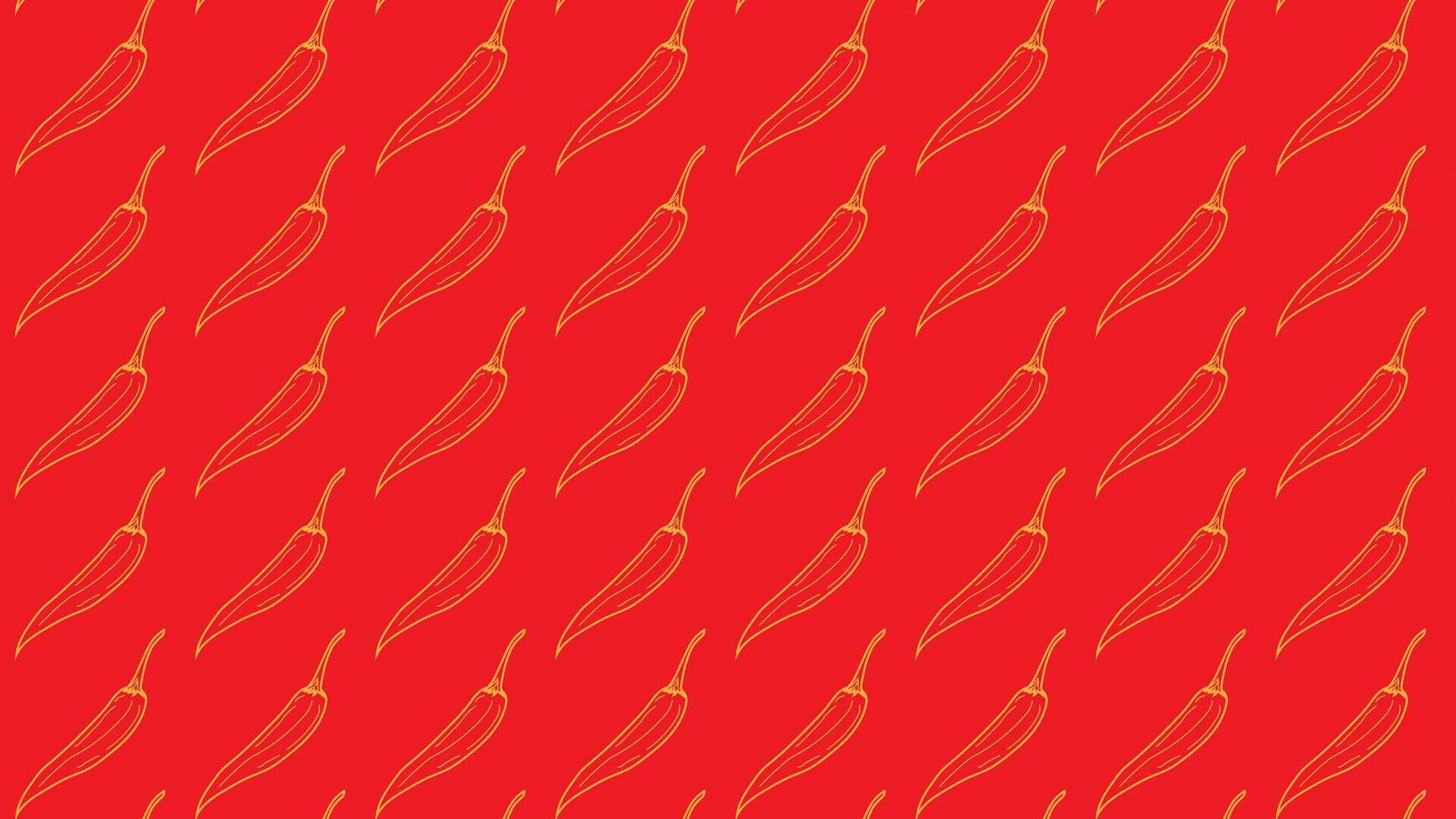 Vibrant Red Background with a Repeating Pattern of Yellow Chili Peppers - A Fiery Culinary Design Pro Vector