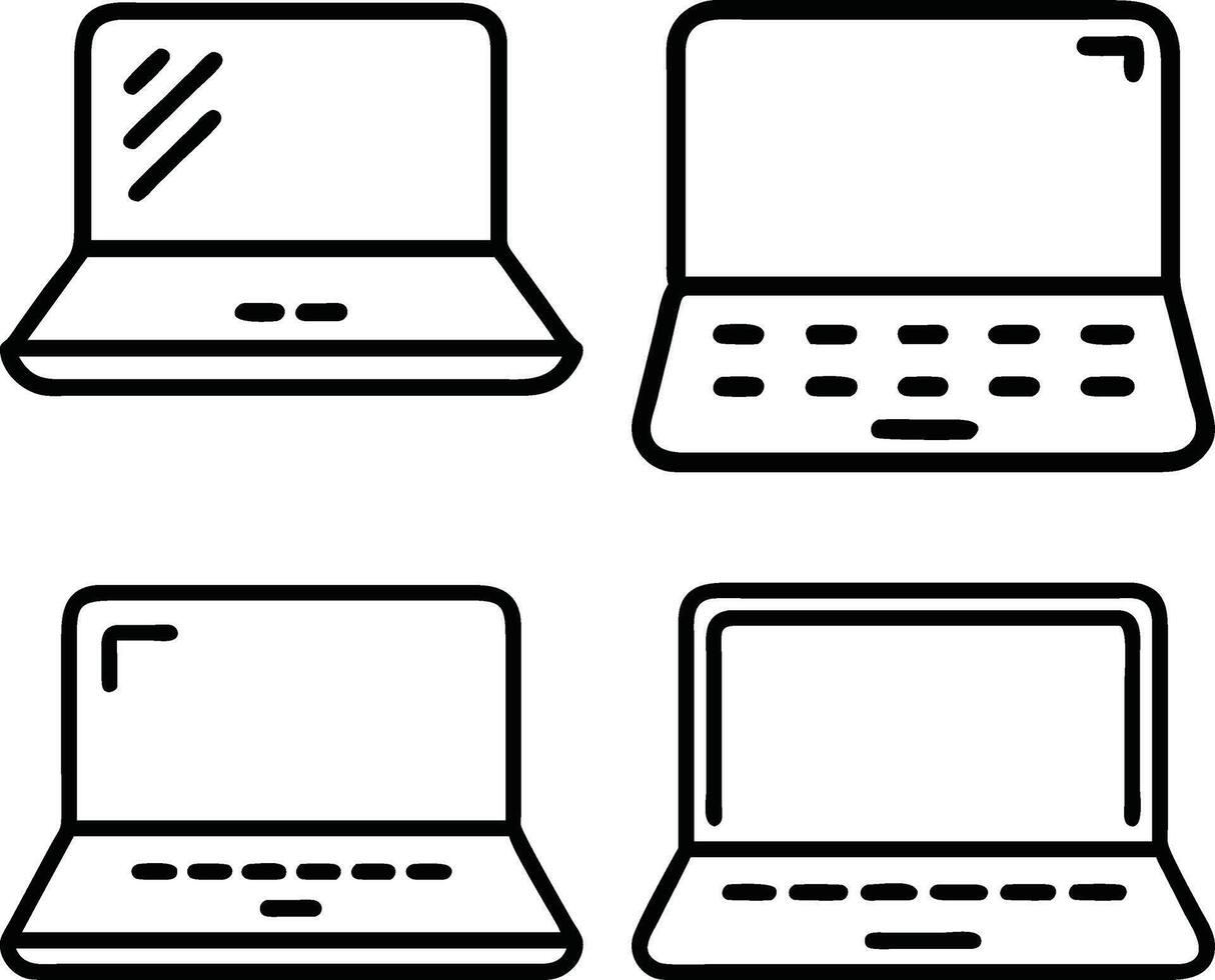 Four Black Line Art Icons of Laptops computer notebook Pro Vector