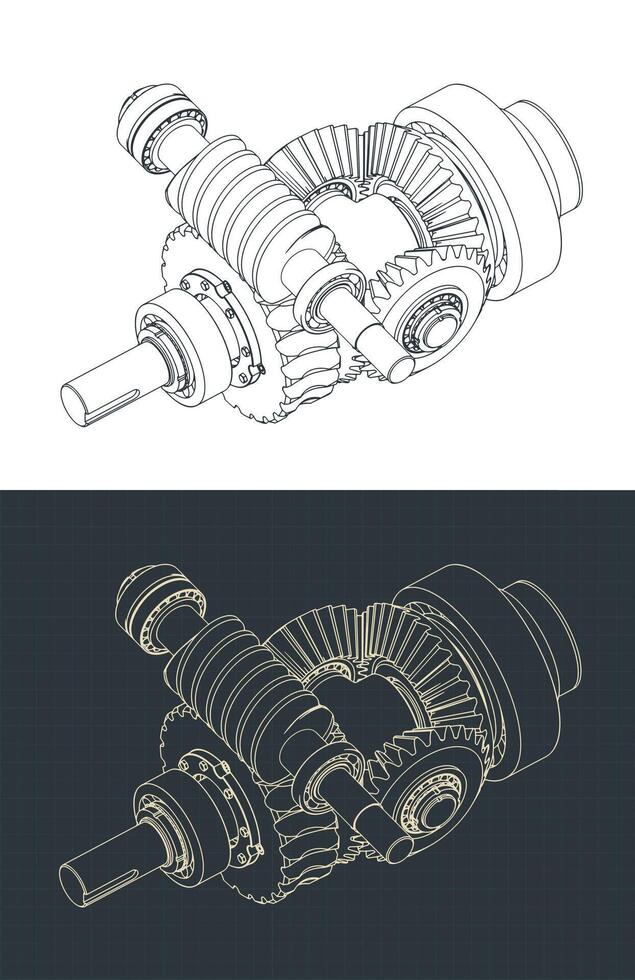 Worm gearbox with differential structure isometric drawings Pro Vector