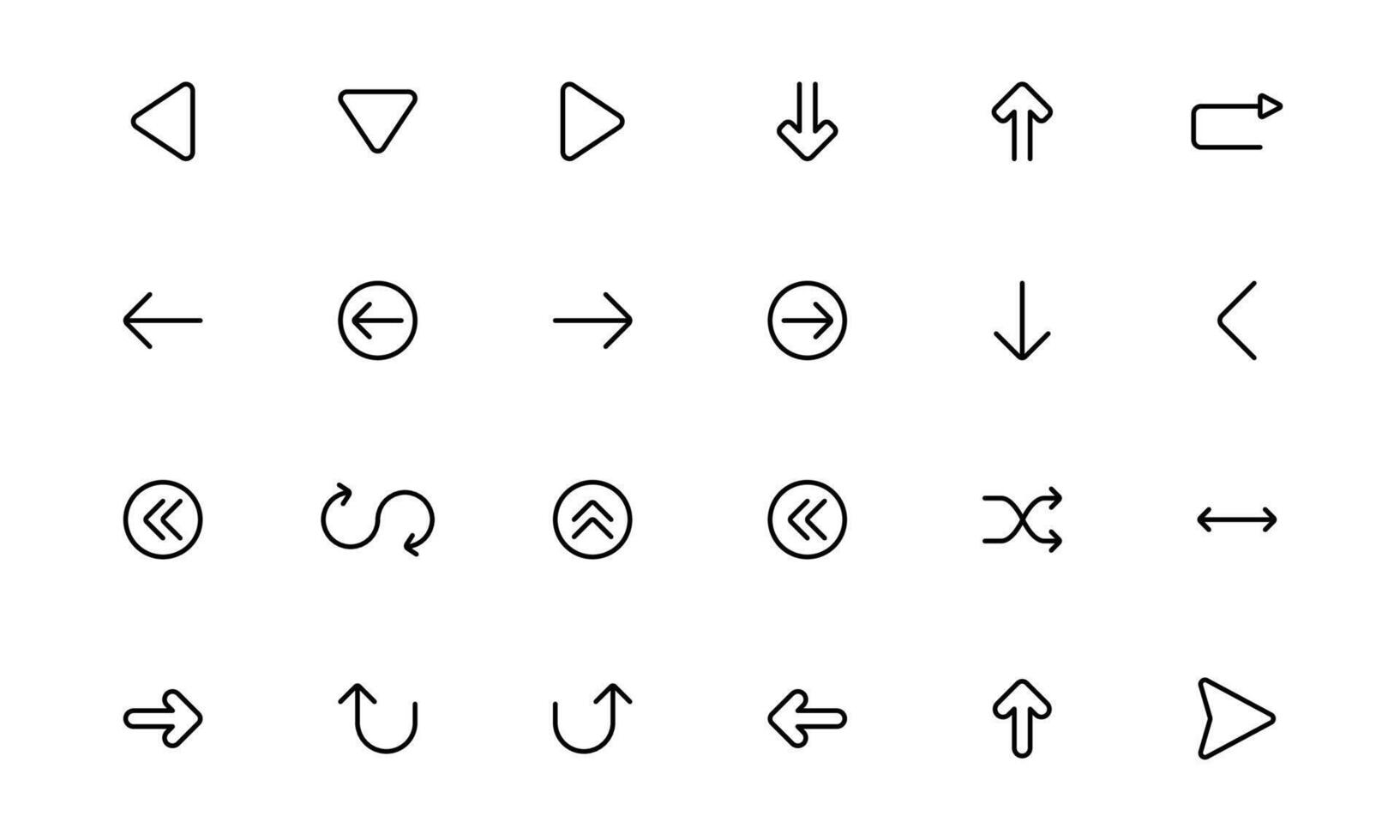 Circle and Arrow Icons with smooth flat outline for workflow progress, motion tracking, and direction visuals in modern web and app dashboards. Pro Vector