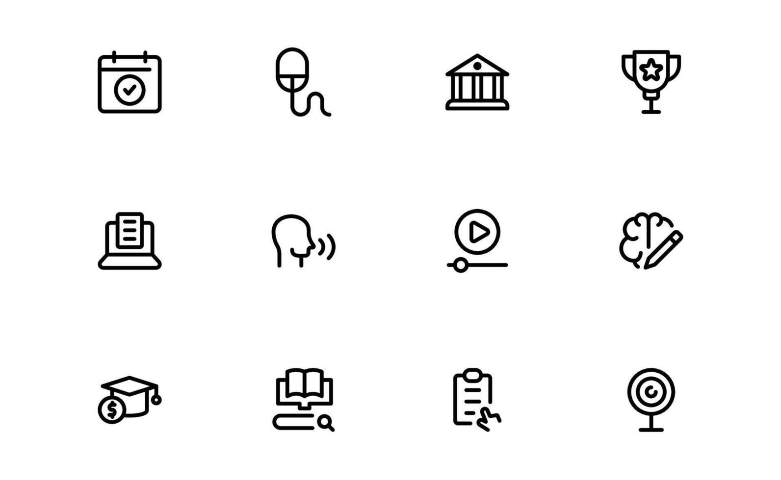 Modern Education Tools Icons with precise minimal lines for e-learning solutions, classroom technology, and study tools in apps and websites. Pro Vector
