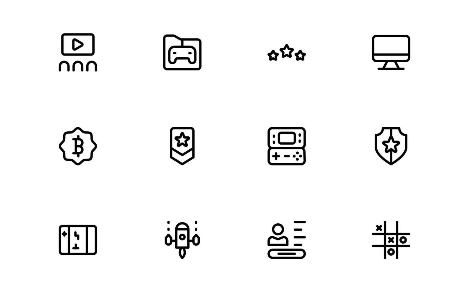 Gaming Icons with stylish minimal design for esports competitions, digital games, and controller interfaces in modern digital dashboards. Pro Vector