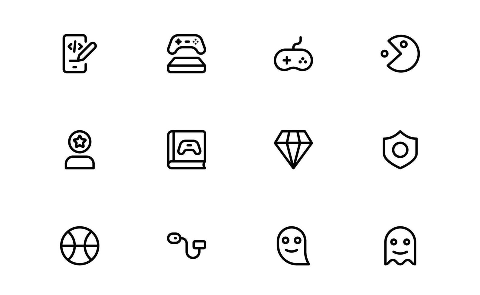 Gaming Icons with simple minimal outline for digital game systems, controllers, and gaming setups for websites and applications. Pro Vector