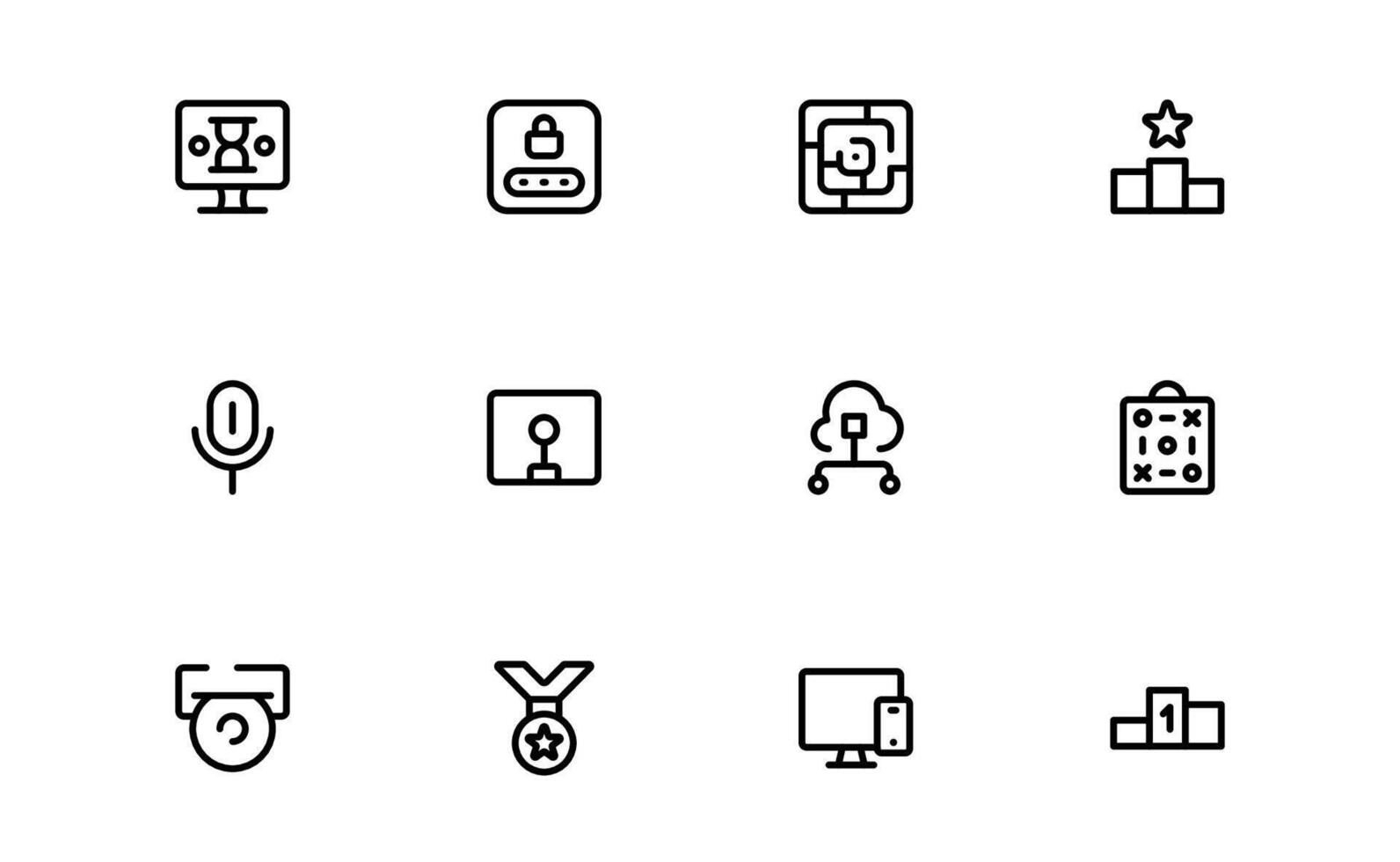 Gaming Icons with flat minimal outline design for games, controllers, and player interfaces in modern apps and websites. Pro Vector