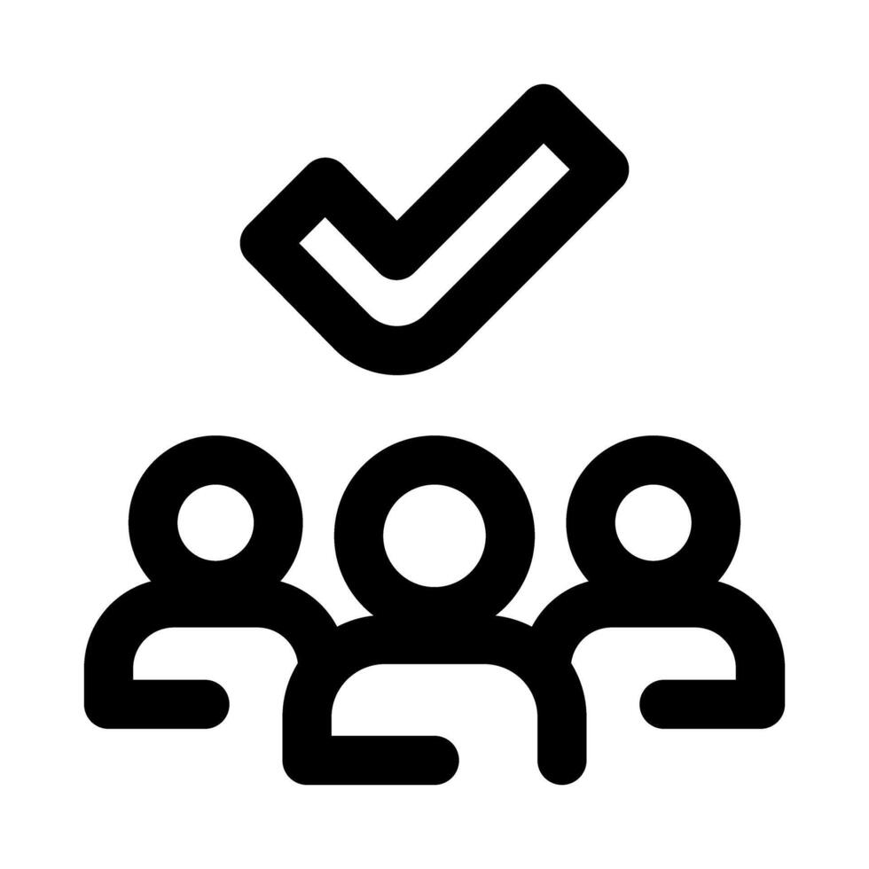 Teamwork icon in flat minimal outline style representing approval success people group collaboration unity and achievement concept Pro Vector