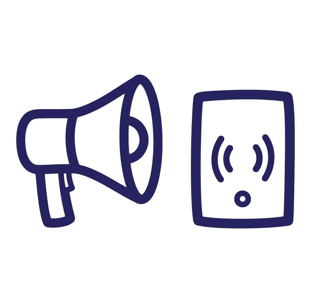 Simple illustration of megaphone and smart device representing communication and wireless technology Pro Vector