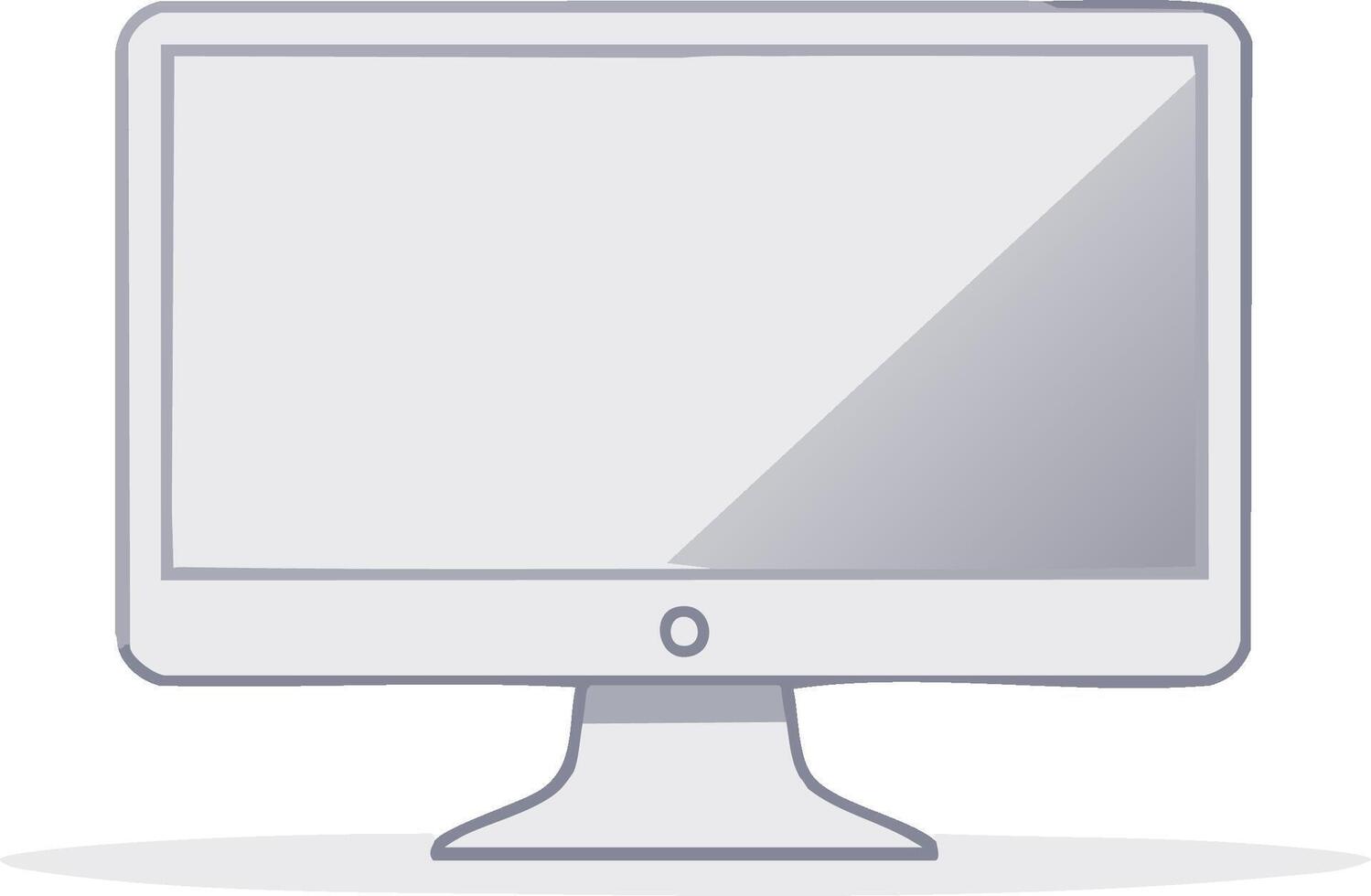 Clean Line Art Computer Monitor Displaying a Light Gray Screen with Subtle Reflections Pro Vector