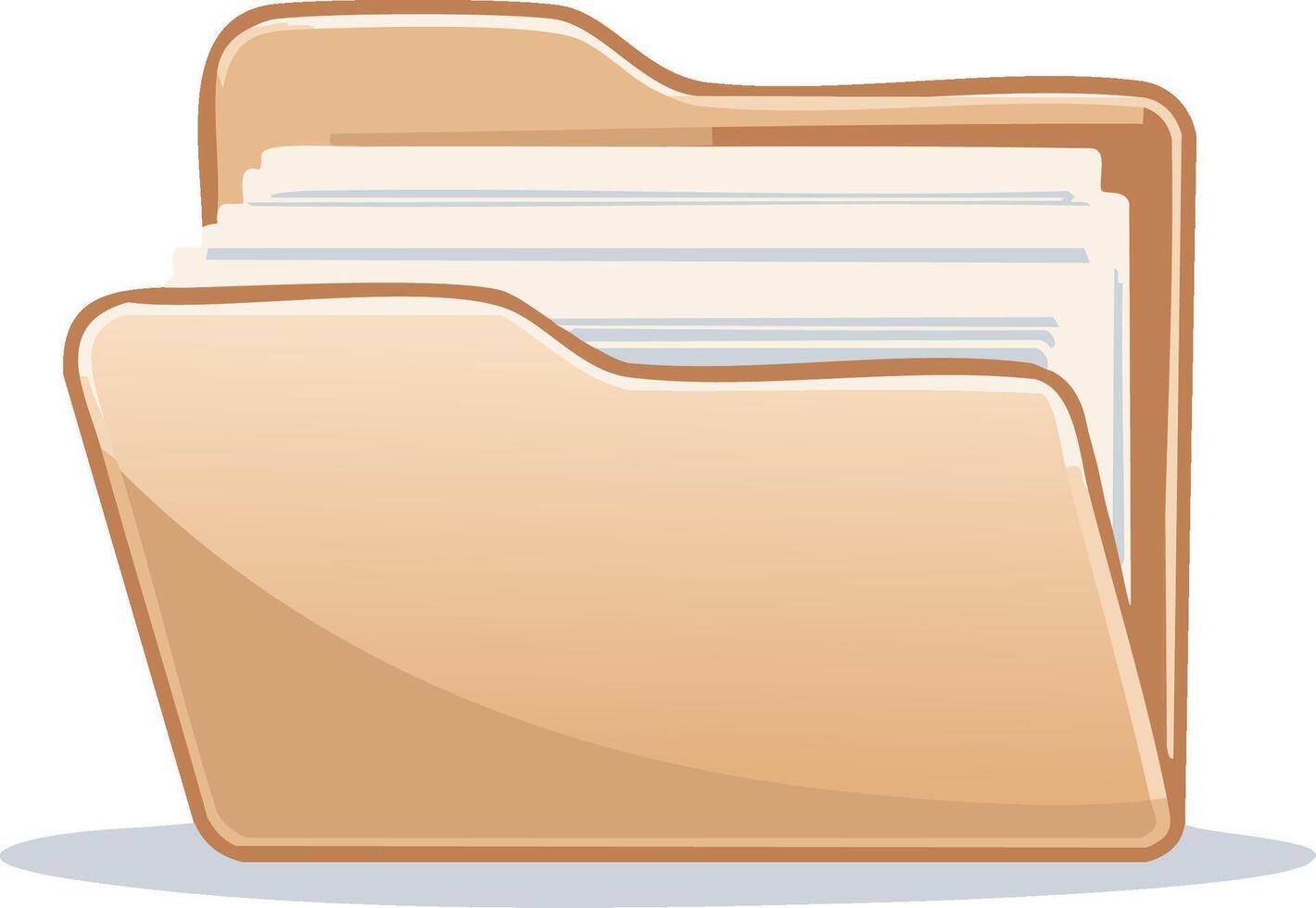 Glossy cartoon illustration of a file folder full of paper documents for office and business concepts Pro Vector
