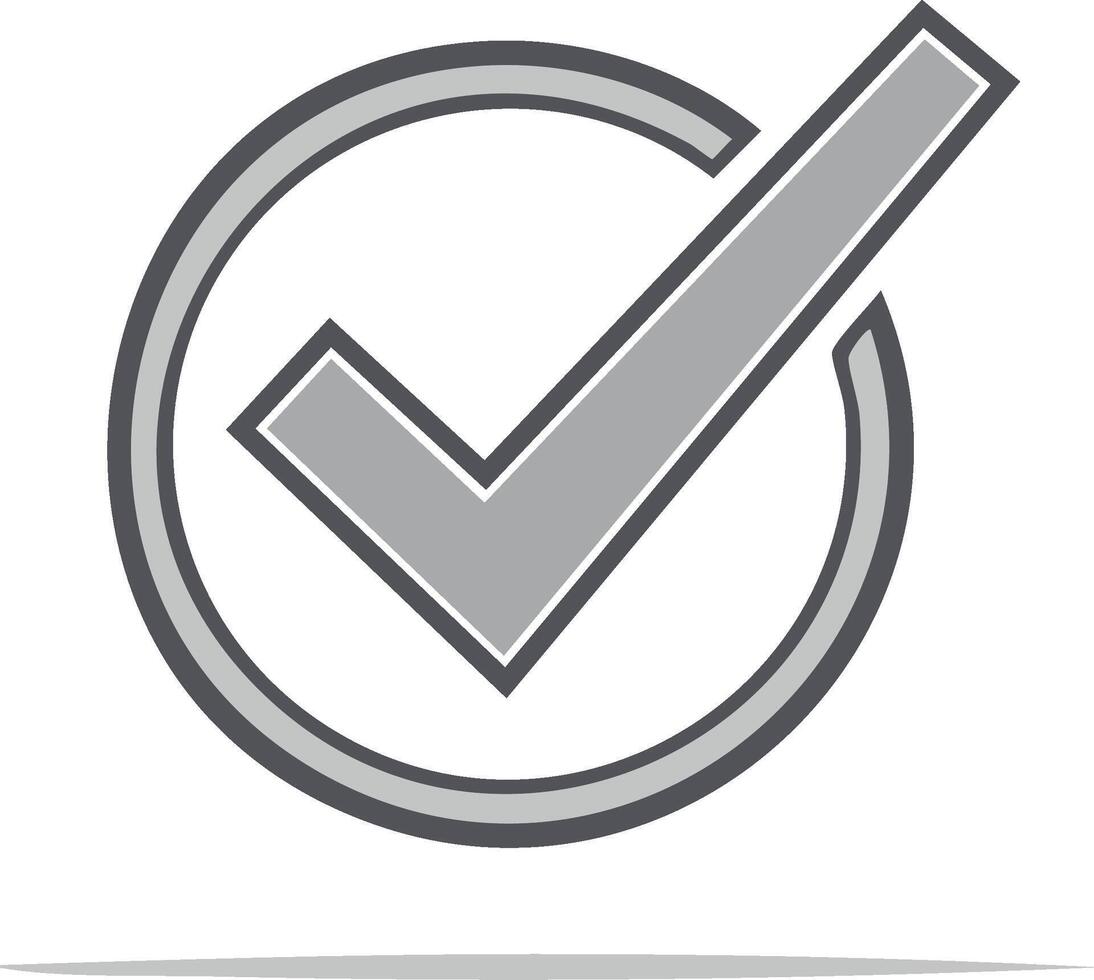 Grey check mark icon, symbolic approval symbol in circle, verification sign for web design and graphic elements Pro Vector