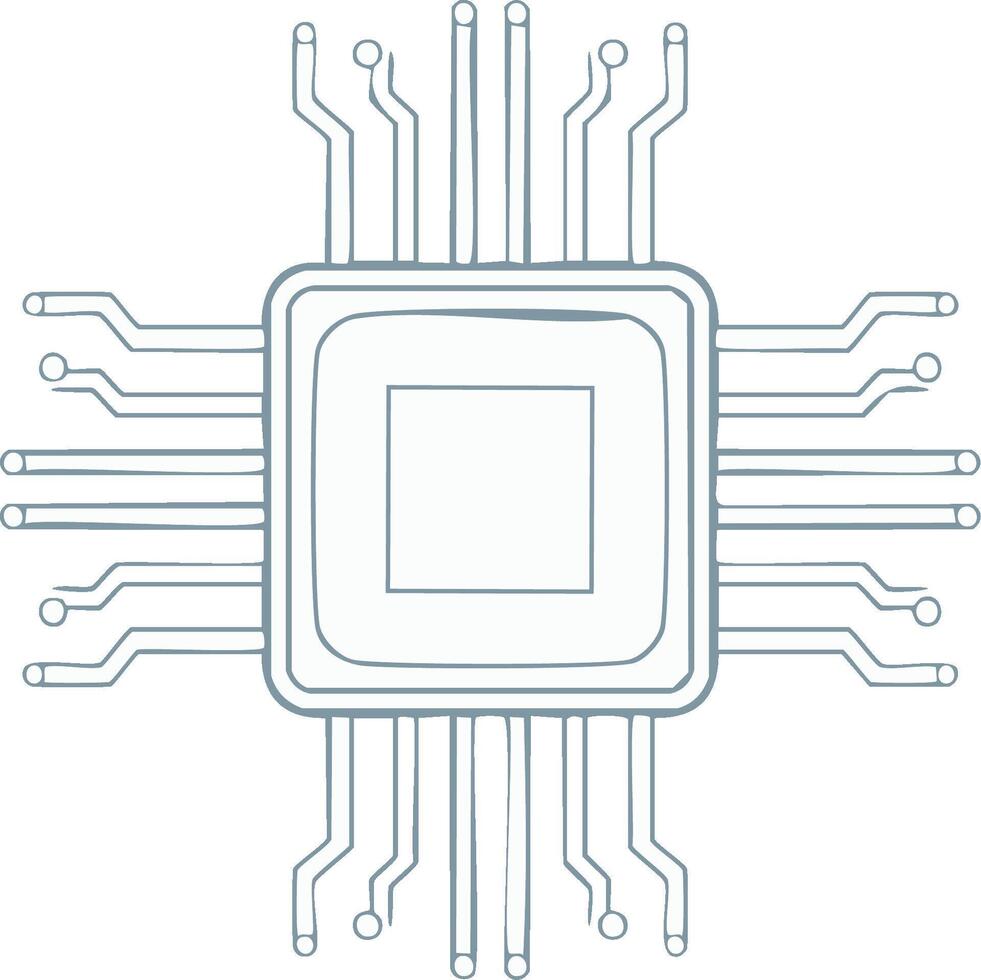 Doodle Illustration of Microchip with Circuit Board, Computer Technology and Processor Component, AI and Electronic Engineering Element Pro Vector