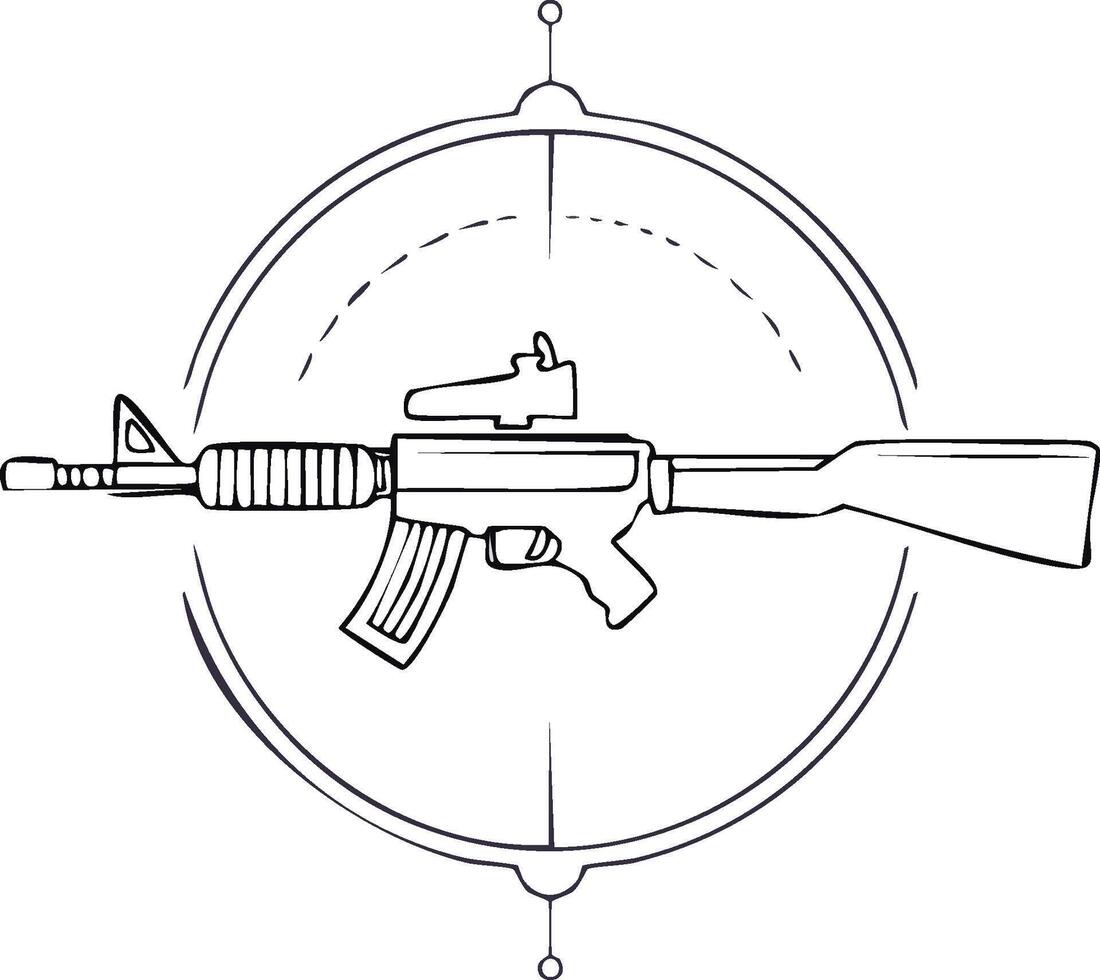 Monochrome Ar-15 Assault Rifle Outlined Within a Circle With Aiming Points Pro Vector