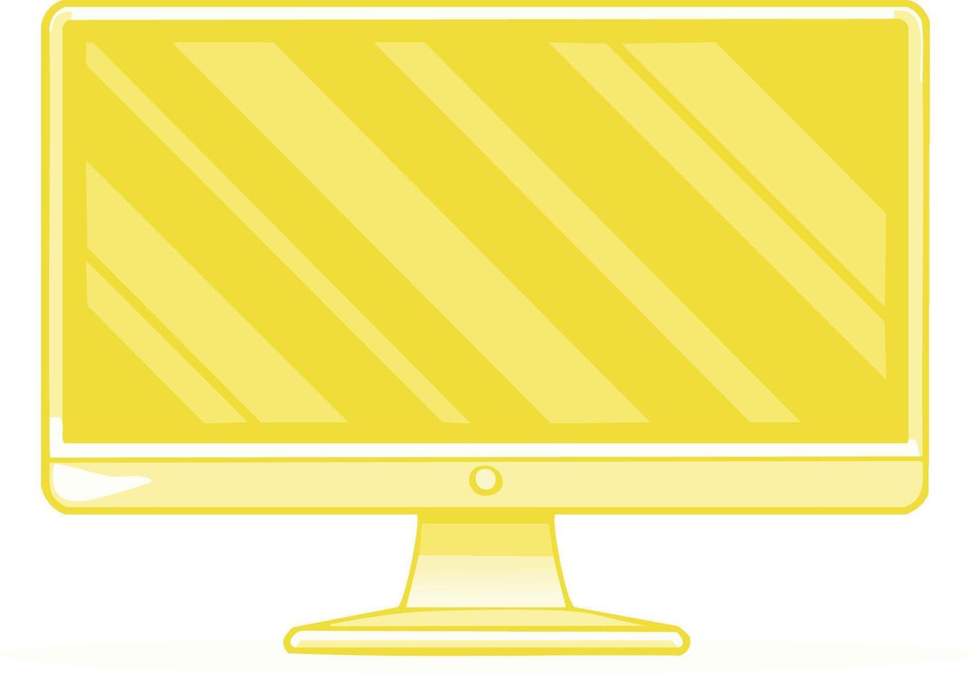 Bright Yellow Computer Monitor Display Screen Flat Design Technology Icon Pro Vector