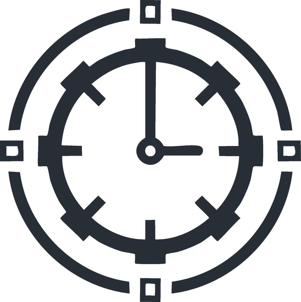 Circular Clock Time Icon with Short Hands and Square Markers, Timekeeping concept Pro Vector