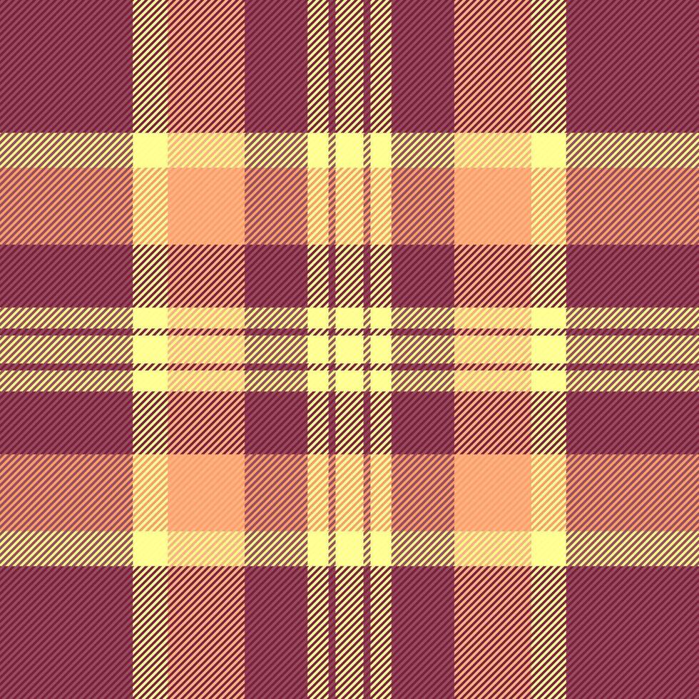 Seamless plaid pattern with maroon, peach and yellow tones. Warm, rustic textile design. Ideal for backgrounds, apparel, and crafts. Versatile texture. Pro Vector