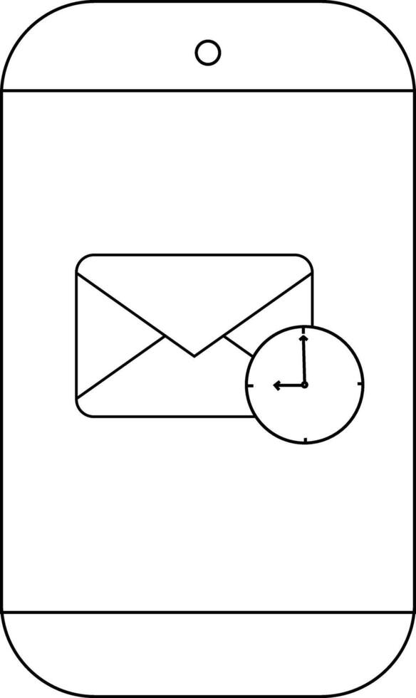 A smartphone screen displays an envelope icon with a clock overlaying it vector