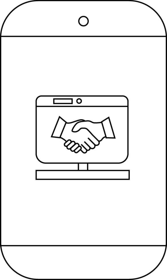 Phone displays a computer screen with handshake graphic in black and white Free Vector