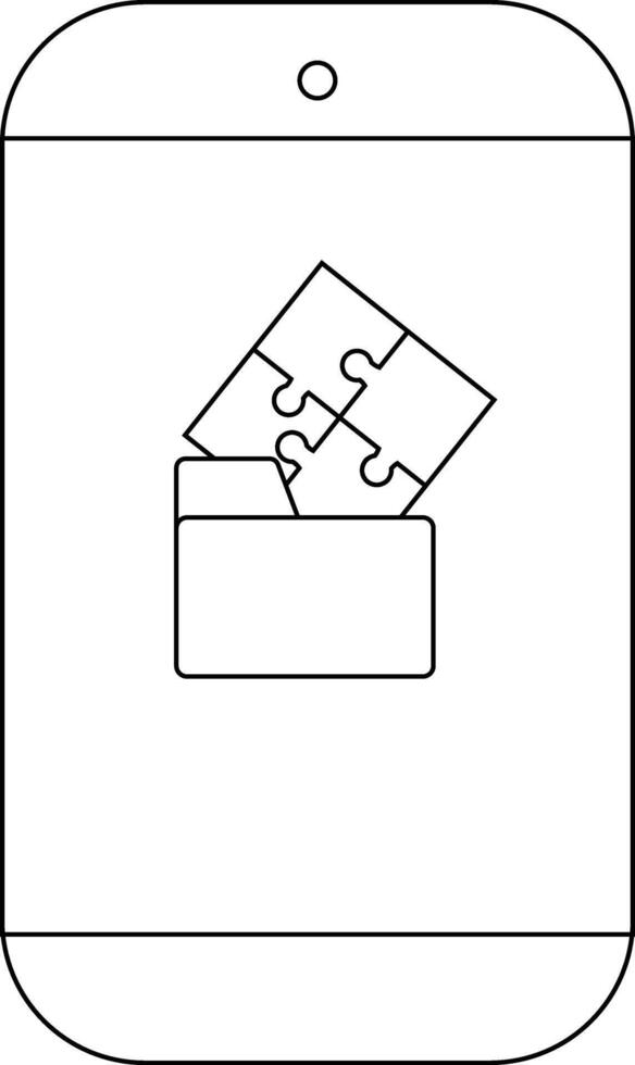 A mobile phone displays a file folder with four puzzle pieces emerging from it vector