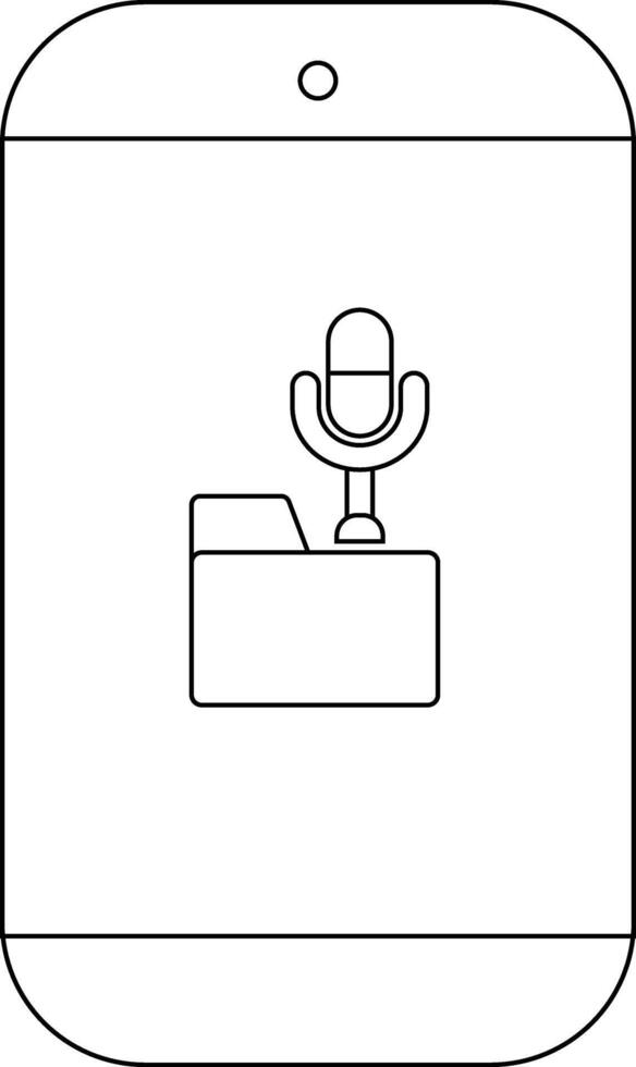A phone displays a file folder icon with a microphone above it vector
