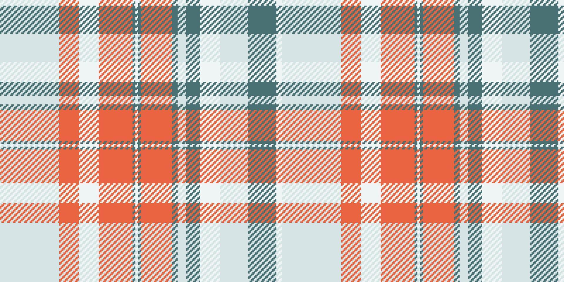 Elegant plaid pattern with intersecting lines in orange, teal, and light gray. Ideal for textiles, backgrounds, or rustic design projects. Classic style. Pro Vector