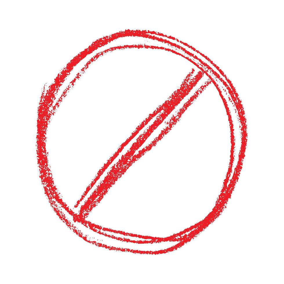 Hand drawn prohibition sign No entry symbol Red circle with cross line clipart in doodle style Ban Restriction Forbidden stop Single element for print, web, design forbidden Pro Vector