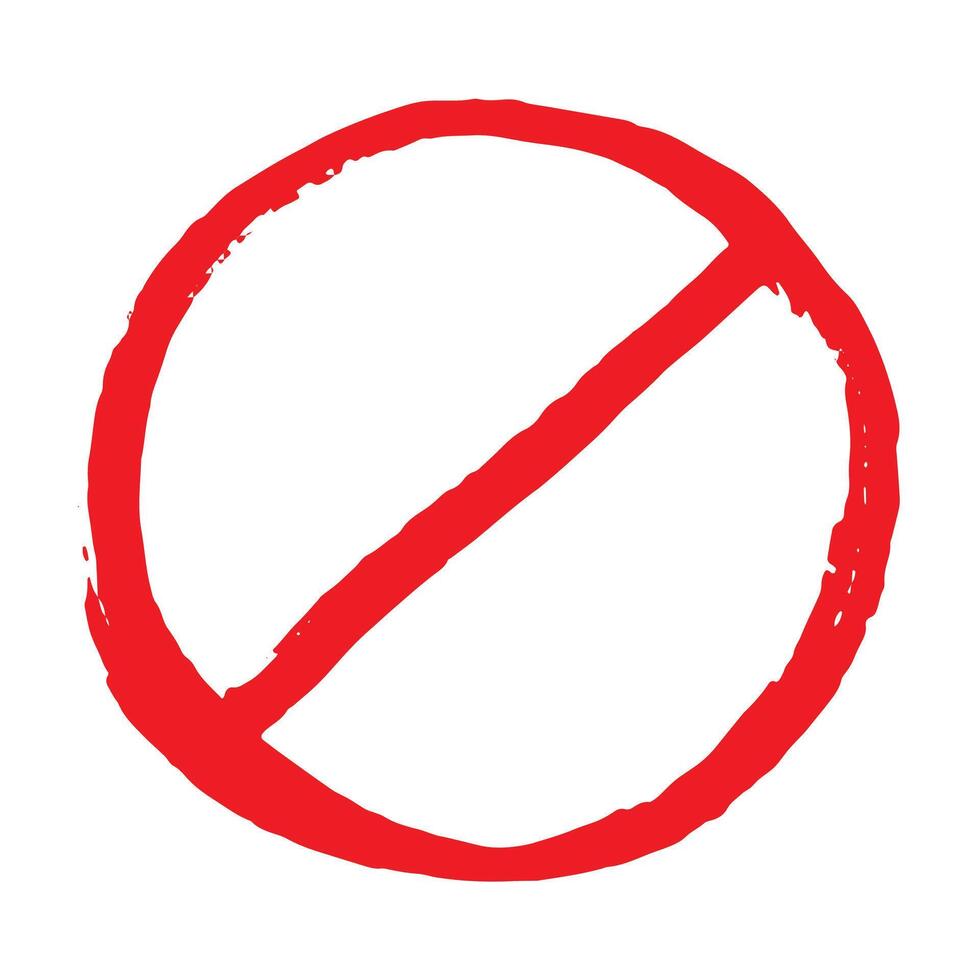 Hand drawn prohibition sign No entry symbol Red circle with cross line clipart in doodle style Ban Restriction Forbidden stop Single element for print, web, design alert Pro Vector