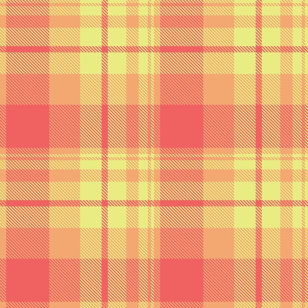 Vibrant, seamless plaid pattern in yellow, orange, and red. Ideal for backgrounds, textiles, and festive designs. Adds warmth and texture. Versatile backdrop element. Pro Vector