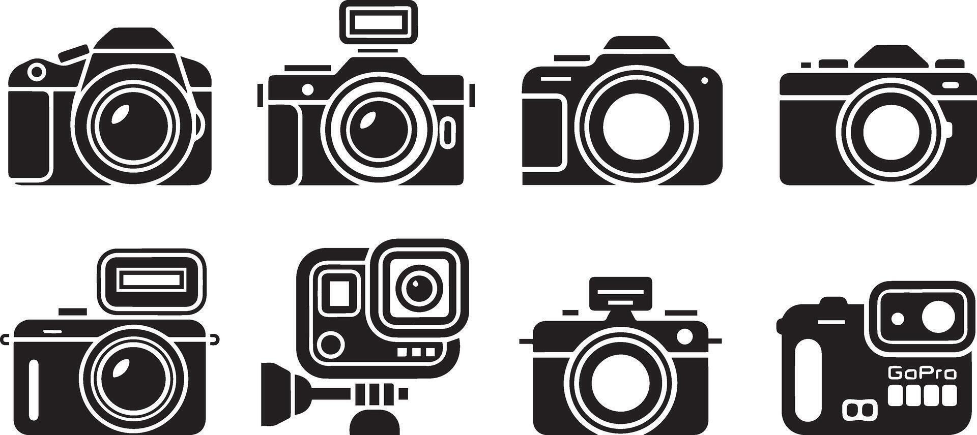 Simple black silhouette camera symbols for web, mobile, and design projects. Pro Vector