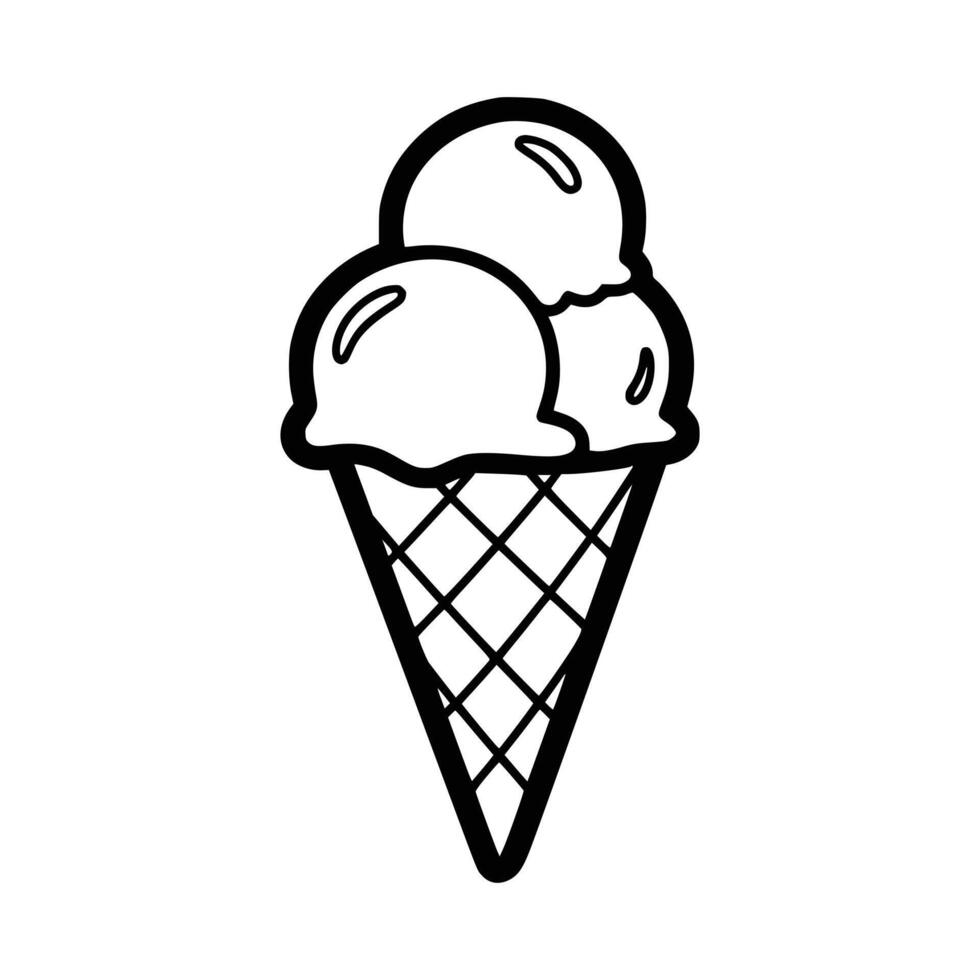 Black and White Ice Cream Cone with Three Scoops. Free Vector