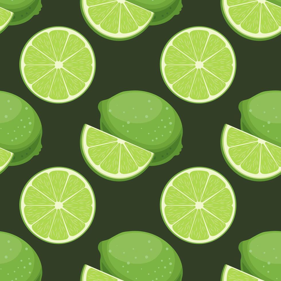 Seamless pattern with limes. Vibrant green limes and slices pattern. Background with citrus fruit. Pro Vector