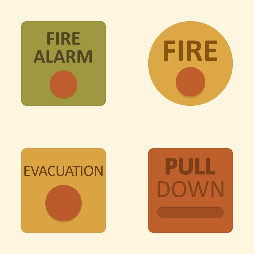 Red Alert Buttons and Fire Symbols on Square and Circular Backgrounds for Safety Use vector