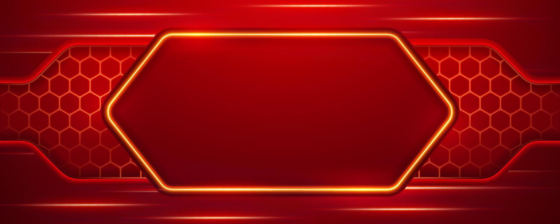 Red glowing technology frame with hexagonal pattern for text space Pro Vector