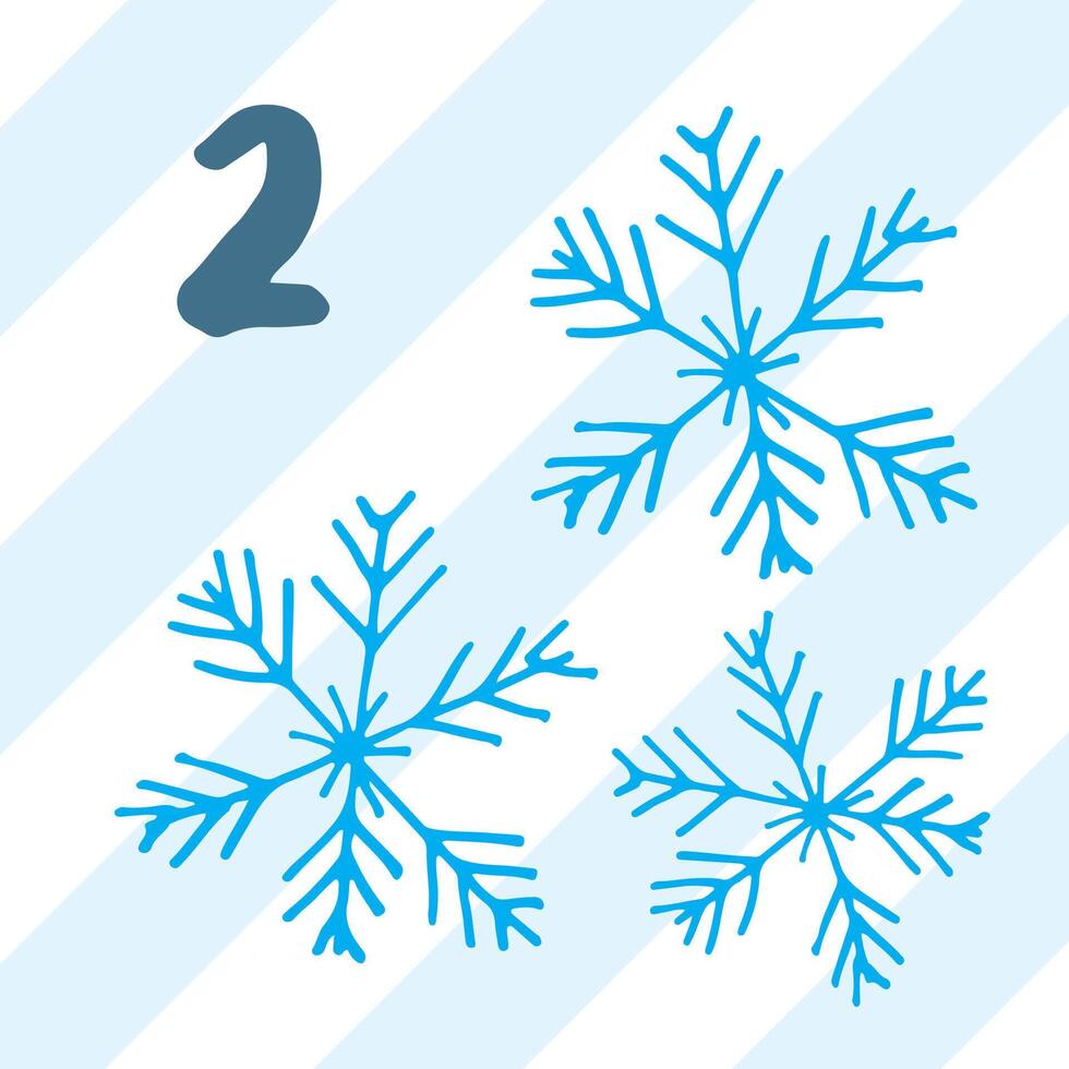Christmas advent calendar card design Snowflakes on a blue background with the number two Pro Vector
