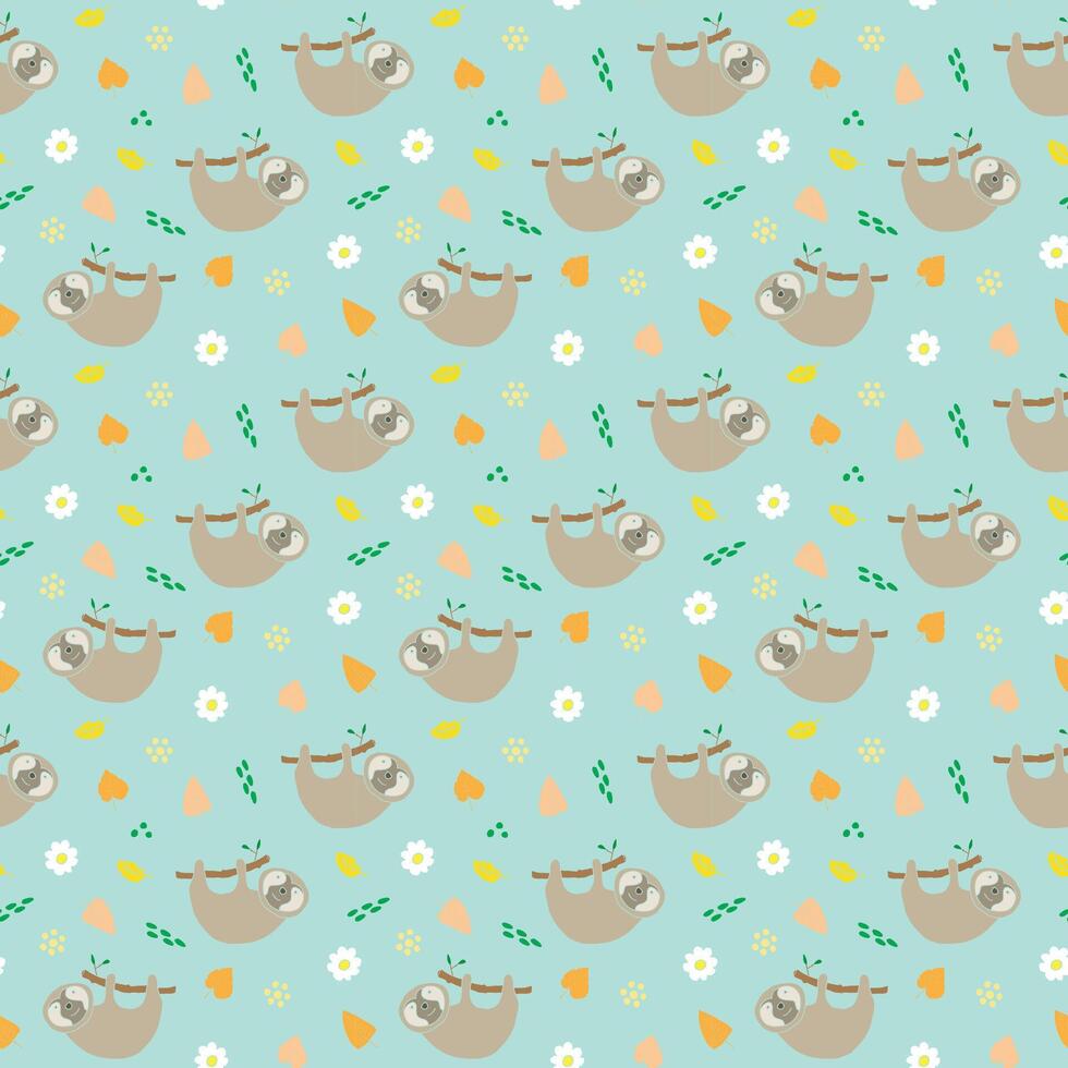 A seamless pattern with a sloth hanging on a branch. Pro Vector