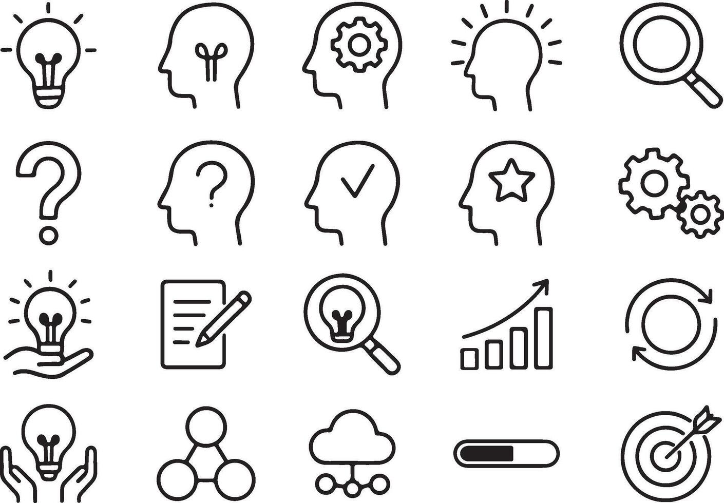 Collection of hand-drawn icons representing critical thinking innovation ideas problem solving and strategy development concepts vector