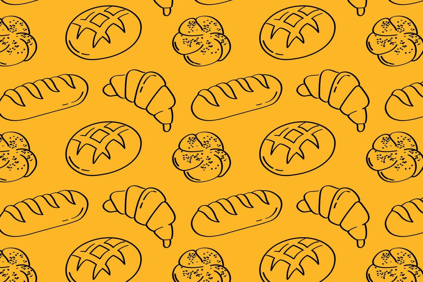 Bakery Icons Doodle Pattern for Menu, Packaging, and Branding Projects. Collection of cute doodle bakery icons bread, croissants, muffins. Perfect for cafe menu, wrapping paper, and textile prints. Pro Vector